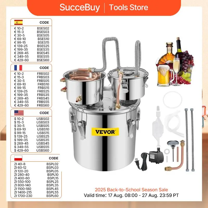 Welcome to Your Kitchen Picks, where home brewing and distilling become simple and enjoyable. This SucceBuy Alcohol Distiller Machine comes in 12L, 20L, and 30L capacities, making it perfect for beginners and experienced brewers alike. Crafted from high-quality materials, it ensures durability, safety, and efficient distillation for beer, wine, and homemade spirits. The included DIY wine and moonshine apparatus allows you to create customized beverages right at home. Designed with precision, it delivers consistent results while maintaining the flavor and aroma of your brew. Its integrated dispenser makes pouring and serving easy and mess-free. Ideal for hobbyists, craft enthusiasts, or small-scale production, this distiller combines performance with convenience. Compact and easy to set up, it fits well in home brewing spaces or small kitchens. Enjoy the satisfaction of creating your own spirits, wine, or beer with professional-quality results. Choose this alcohol distiller kit for its versatility, reliability, and ease of use. Brew, distill, and serve your creations with confidence and style.
