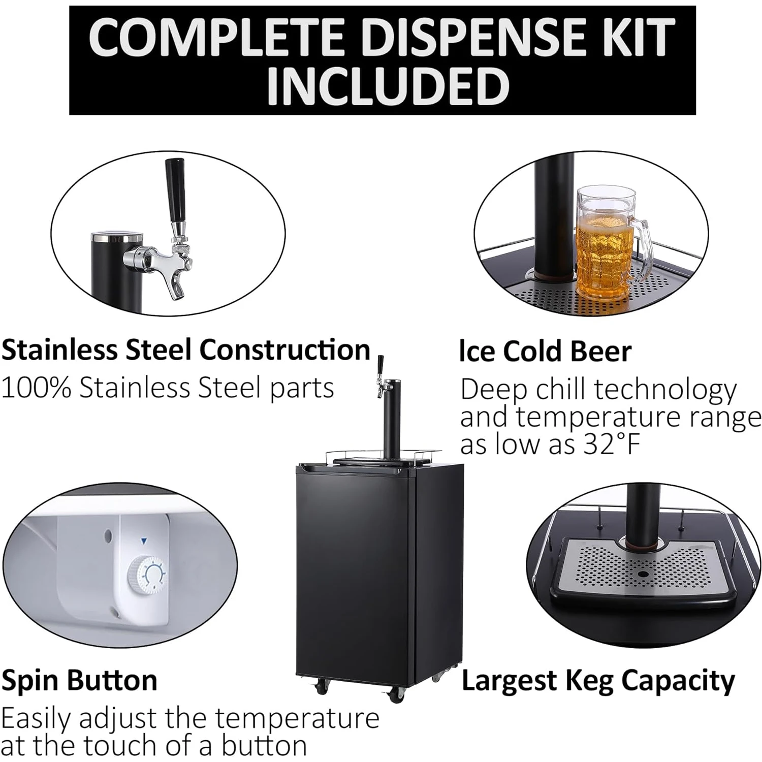 Welcome to Your Kitchen Picks, where premium appliances meet unforgettable entertaining. This Beer Kegerator is designed to keep your draft beer perfectly chilled and ready to serve anytime. Featuring a one-key control system, it offers easy and convenient operation for effortless beer dispensing. The full-size barrel cooler provides ample space and includes adjustable shelves for added storage flexibility. Built with a durable stainless steel drip tray and rail, it ensures a clean, mess-free serving experience. Its sleek barrel-style design adds a professional and stylish touch to any home bar, kitchen, or entertainment area. Engineered for consistent cooling, it preserves the freshness and flavor of every pour. Ideal for parties, gatherings, or personal enjoyment, this kegerator delivers bar-quality beer at home. The sturdy construction ensures long-lasting performance and reliability. Easy to use and maintain, it’s suitable for both beginners and beer enthusiasts. Whether you’re hosting friends or relaxing after a long day, this kegerator elevates every moment. Choose this beer kegerator for its performance, durability, and modern design. It’s the perfect centerpiece for any beer lover’s setup.