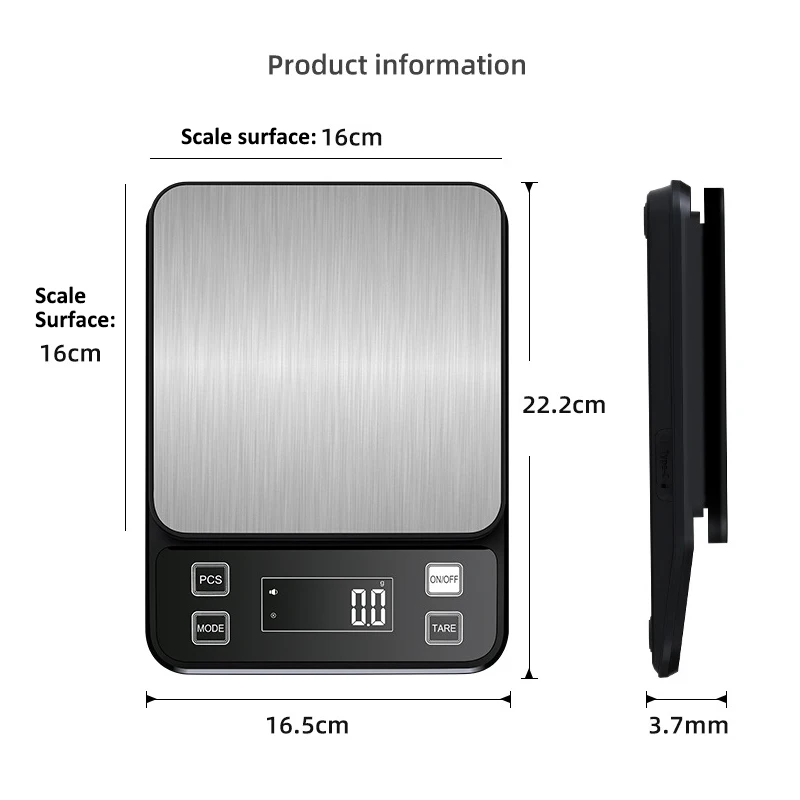 This waterproof digital kitchen scale delivers precise measurements with 0.1g accuracy, supporting weights up to 3kg, 5kg, or 10kg. Built with a sleek stainless steel surface, it combines durability with easy cleaning, making it perfect for everyday cooking, baking, and portion control. The clear LCD display ensures quick and accurate readings, while its compact design saves space in the kitchen. A reliable and multifunctional tool, it’s ideal for anyone who values precision and convenience in food preparation.